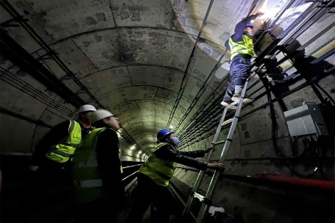 圖為技術人員夜間進入武漢地鐵建設5G網絡。許國勝 攝