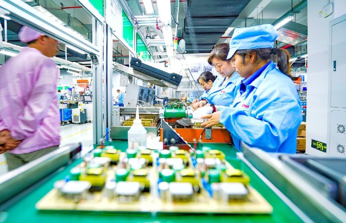 川渝合作(達州·大竹)示范園區內,工人們在流水線上忙碌著。(黃江濤 攝)