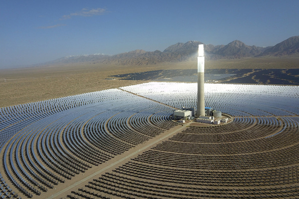 這是近日在海西蒙古族藏族自治州德令哈市光伏(光熱)產業園拍攝的青海中控德令哈50兆瓦光熱電站(無人機照片)。新華社記者 范培珅 攝