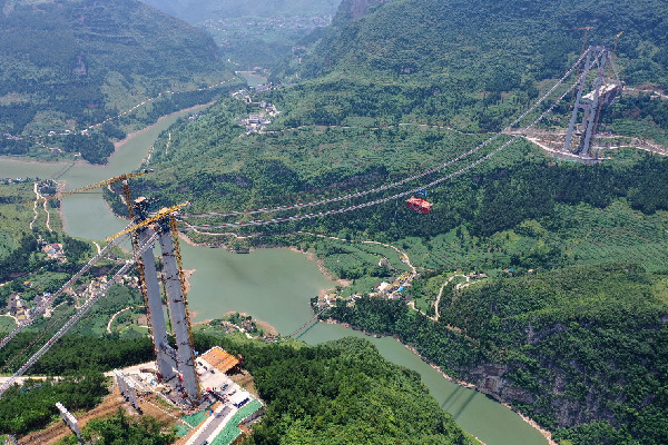 6月28日,由中鐵廣州局承建的貴州金(金沙)仁(仁懷)桐(桐梓)高速桐梓河特大橋第一節鋼桁梁開始進行吊裝,標志著桐梓河特大橋進入新的重要施工階段。據了解,該橋位于貴州省仁懷市、桐梓縣交界處,橫跨桐梓河,全長1422米,主跨達965米,主塔高208米,是全線重要的控制性工程。