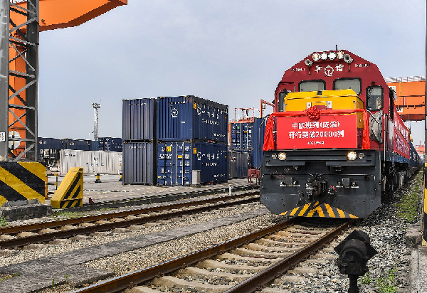 當日,隨著兩列中歐班列(成渝)滿載著電子產品、機械零件、日用百貨等貨物,緩緩駛出成都國際鐵路港、重慶團結村中心站,分別開往波蘭羅茲和德國杜伊斯堡,成渝兩地中歐班列累計開行量突破2萬列。