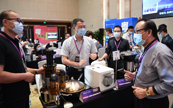在網上廣交會的線下雙循環貿易促進活動上,企業代表和采購代表洽談業務(資料照片)