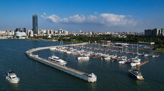 26日,參展游艇駛入??趪曳毓泊a頭。當日,第二屆中國國際消費品博覽會游艇展在??趪曳毓泊a頭開幕,超過200艘船艇參展。