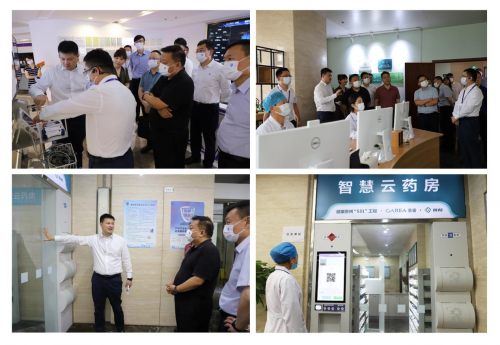 簽約結束后,通用技術中國醫藥黨委書記、董事長李亞東一行蒞臨蓋??萍?,參觀了企業數字展廳、健康管理中心、數字便民健康場所和智慧云藥房,詳細了解并體驗產品及系統平臺。