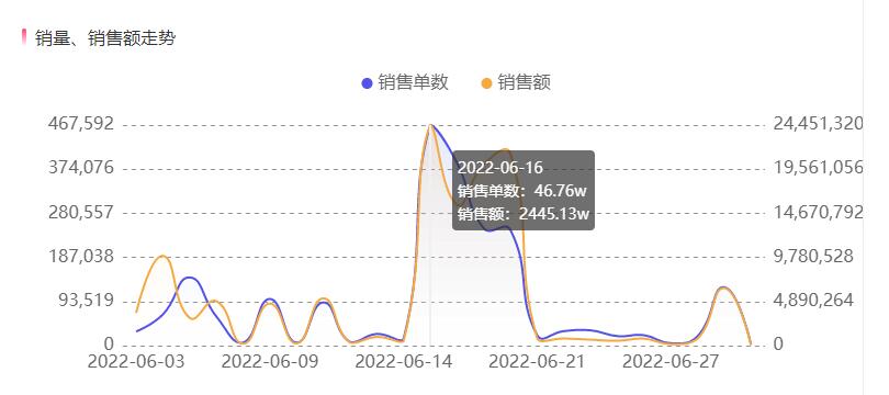 6月16日-6月19日,蘑菇街主播“小甜心_呢”連續多場直播實現單場GMV超1500萬,其中,6月16日的單場直播銷售額預估達2445.13萬,直播銷量預估46.76萬,10款商品單品銷量超萬單,單品最高銷量預估14.36萬,單品最高銷售額預估達413.89萬。