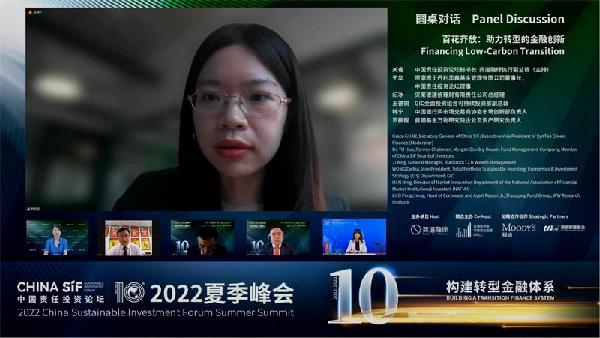 中國責任投資論壇秘書長、商道融綠執行副總裁關睿主持討論了“百花齊放:助力轉型的金融創新”主題圓桌對話環節,來自公募基金、理財公司、主權基金、交易商協會,以及產業基金的各位代表就轉型金融的內涵及發展轉型金融的機遇與挑戰進行了對話。