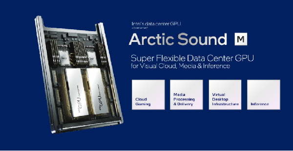 面向數據中心,代號Arctic Sound-M的首款配備AV1編碼器GPU,可實現高效高質量視頻轉碼、流媒體、云游戲,已經出貨。