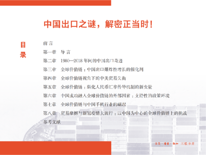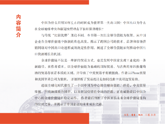 中國為什么只用30年左右的時間成為世界第一大出口國?中國出口為什么在全球地緣沖突和新冠疫情沖擊下依舊強勁增長?近日,由生活·讀書·新知三聯書店出版的《中國出口之謎:解碼“全球價值鏈”》對此進行了一一解答,全面、深刻地解析了中國出口奇跡。該書上市一周已位列當當經濟類新書第一名、京東社科類新書總榜第七名。
