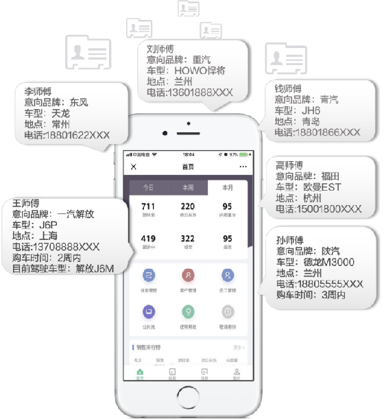 (圖為滿幫集團面向經銷商推出的線索管理工具“滿車寶”)