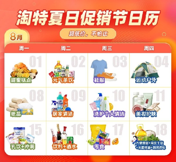 記者獲悉,淘特夏日促銷節將貫穿今年夏天,從7月持續到9月,周一到周四每天推出一個品類,服務消費者日常剛需,保障商品品質、供給穩定的同時,做到持續低價。