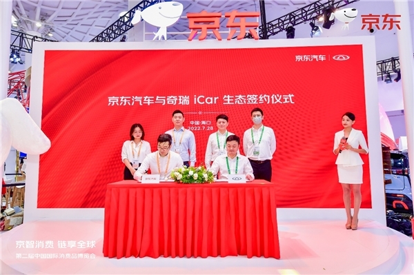 7月28日,在第二屆中國國際消費品博覽會(以下簡稱“消博會”)的京東展區,京東汽車與奇瑞iCar生態再度簽署戰略合作協議,在今年5月達成的首次戰略合作基礎上,持續建設更完善的新能源汽車消費鏈路閉環,圍繞渠道能力共建、汽車生態布局、數字化營銷等內容進一步深化戰略合作,給消費者帶來省心省時的汽車消費體驗。當天,京東汽車與奇瑞iCar生態深度合作的首款新能源汽車——主打“性能小怪獸”的無界Pro,也在消博會新品首發首秀環節迎來了正式發布亮相,并宣布于8月上市發售。