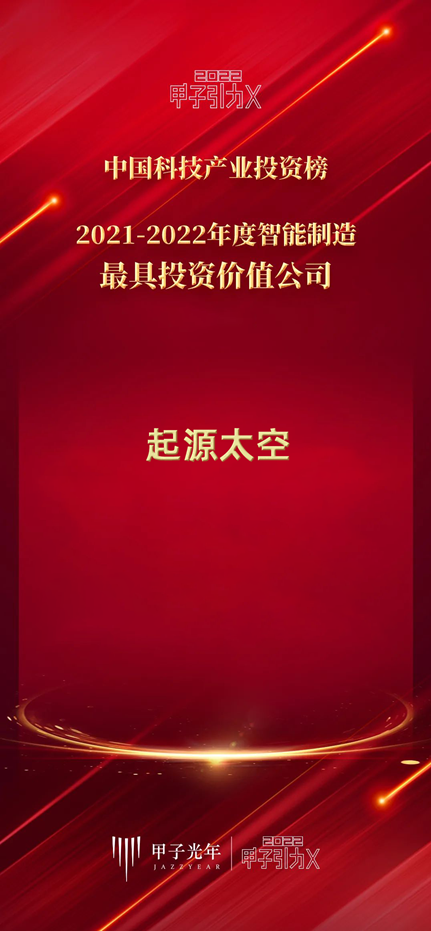 在本次峰會上,起源太空成功入選「甲子光年」“2021-2022年度智能制造最具投資價值公司”榜單?!讣鬃庸饽辍贡硎?,2022年,守在各個賽道的產業資本異?;钴S,大跨步踏入創投圈。此消彼長間,風云變幻的創投江湖緩緩駛入了硬科技投資的新時代。前期“十分耕耘、一分回報”,硬科技投資注定是一場長期主義實踐。作為領先的中國科技產業智庫,「甲子光年」持續關注著可真正促進科技進步與產業發展的投資機構與科創企業,秉持客觀公正的態度,采用科學完備的數據處理分析方法,通過公平公正的評選標準,輸出2021-2022年度科技產業投資機構與科創企業明星榜單。