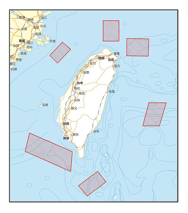 北緯25°34′00″、東經122°50′00″,北緯25°03′00″、東經122°50′00″,北緯25°03′00″、東經122°11′00″,北緯25°34′00″、東經122°11′00″四點連線。