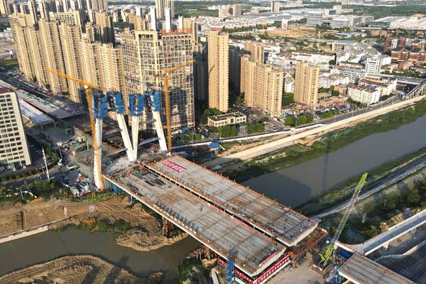 當日,由中鐵四局承建的引江濟淮工程江淮溝通段金寨南路橋主橋貫通。該橋跨越引江濟淮工程航道,全長635米,主橋長257米,設計為獨塔斜拉橋。引江濟淮工程溝通長江、淮河兩大水系,是我國跨流域、跨省重大戰略性水資源配置和綜合利用工程。
