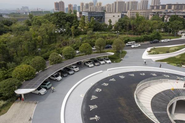 已建成投用的重慶首座光伏充電發用一體充電站(無人機照片)。記者 劉潺 攝