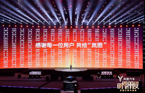 ??《時間的朋友》跨年演講現場,還有一個令人難忘的環節,更準確地說,還有一個尤其令嵐圖車主難忘的環節。在羅振宇講出“真實關系的高境界不僅是‘我對你的服務滿意’,而且是‘我為這份關系驕傲’后”,超1700位嵐圖FREE首批用戶的名字出現在舞臺前方超大演講屏幕上。