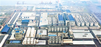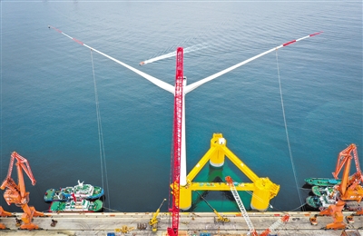由中國船舶集團海裝風電股份有限公司牽頭,聯合相關單位自主研制的“扶搖號”浮式風電機組浮體平臺上配備6.2兆瓦抗臺型I類風力發電機組,在深遠海應用場將依靠九個對稱分布的懸錨鏈系泊實現固定。圖為完成總裝的國內首臺深遠海浮式風電裝備“扶搖號”在茂名廣港碼頭靜待拖航(無人機照片)。記者 劉大偉 攝