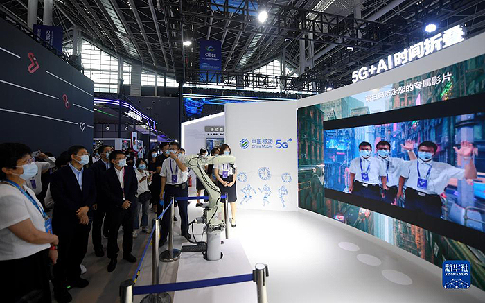 參觀者在河北省石家莊市舉辦的2021中國國際數字經濟博覽會上參觀(2021年9月6日攝)。新華社記者 王曉 攝