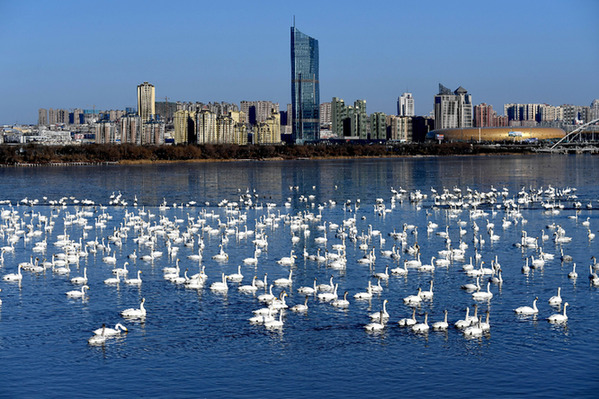 得益于生態的改善,當地天鵝數量從1988年首次發現的12只增加到去年的15300多只,使三門峽成為全球聞名的“天鵝之城”。