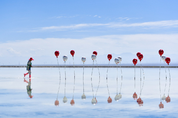 過去是“天上無飛鳥,地上不長草,風吹鹽塊跑”的一片漫漫灰暗之色,現在龜裂起伏的堅硬鹽殼變成了“水草茂密、魚類聚集、鳥類成群、藍天白云碧水”共存的生態大鹽湖,實現了生態、生產、生活融合發展。鹽湖景區已成為備受內地游客追捧的網紅打卡地之一,無論春夏秋冬,很多人不辭萬里趕到海拔2670米的格爾木,只為一睹大自然饋贈的這塊“碧玉”。