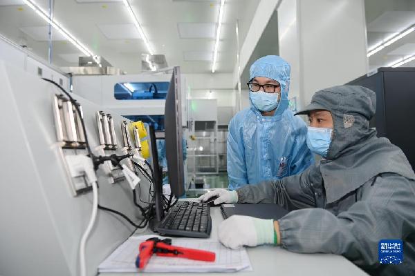 科研人員在秦創原光伏創新中心——隆基中央研究院中試線上工作(2022年9月23日攝)。新華社記者 李一博 攝