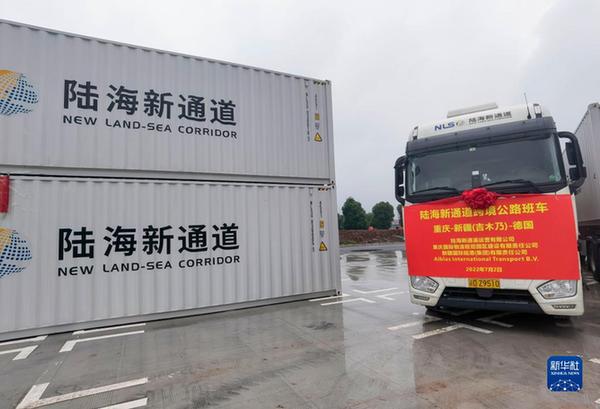 這是陸海新通道跨境公路班車(2022年7月2日攝)。新華社發(張云龍 攝)