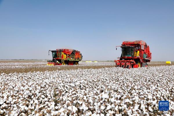在新疆巴音郭楞蒙古自治州尉犁縣興平鎮統其克村,兩臺國產采棉機在采收棉花(2022年9月30日攝)。新華社發(汪志鵬 攝)