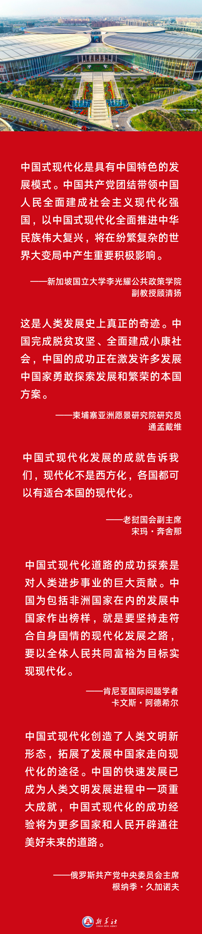 “中國式現代化創造了人類文明新形態,拓展了發展中國家走向現代化的途徑?!倍砹_斯共產黨中央委員會主席根納季·久加諾夫指出,中國的快速發展已成為人類文明發展進程中一項重大成就,中國式現代化的成功經驗將為更多國家和人民開辟通往美好未來的道路。