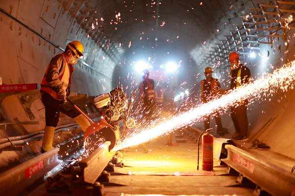 11月8日,工作人員在進行“長軌通”前最后的施工。