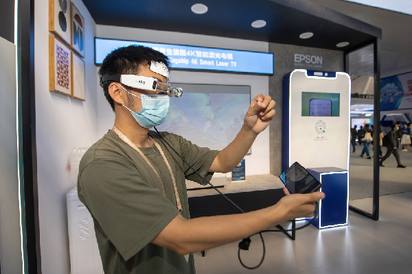 11月10日,觀眾在 “互聯網之光”博覽會上體驗AR感知交互眼鏡系統。