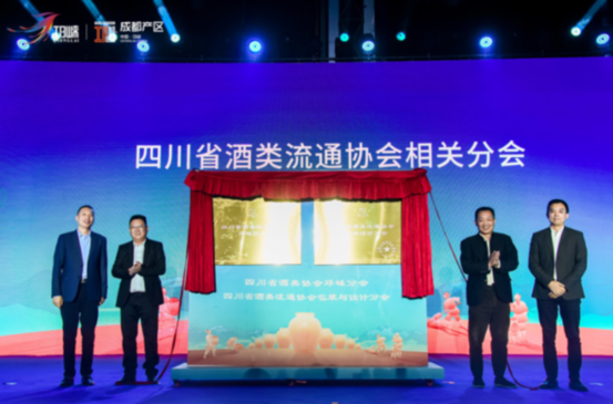 圖為四川省酒類流通協會邛崍分會、四川省酒類流通協會包裝與設計分會正式宣告成立