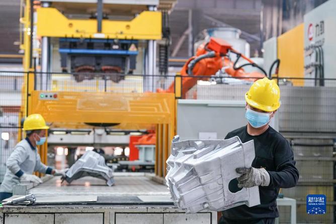11月7日,在安徽省馬鞍山市含山縣輝晗精密機械有限公司,工人在壓鑄生產線上工作。新華社記者 劉軍喜 攝