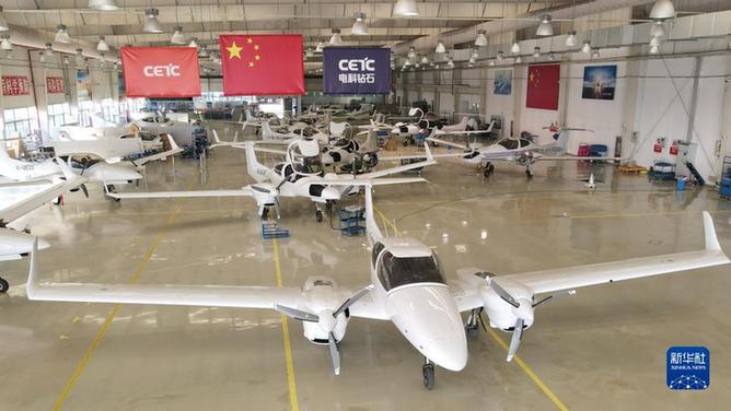 蕪湖市灣沚區中電科蕪湖鉆石飛機制造有限公司預裝車間內,用高端復合材料制作的機身、機翼部分,正被運至總裝車間,企業主營通用飛機研發生產制造以及通用航空產業運營服務等業務。