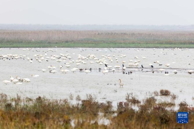 這是11月22日在上海崇明東灘鳥類國家級自然保護區拍攝的棲息的各種鳥類。新華社記者 王翔 攝