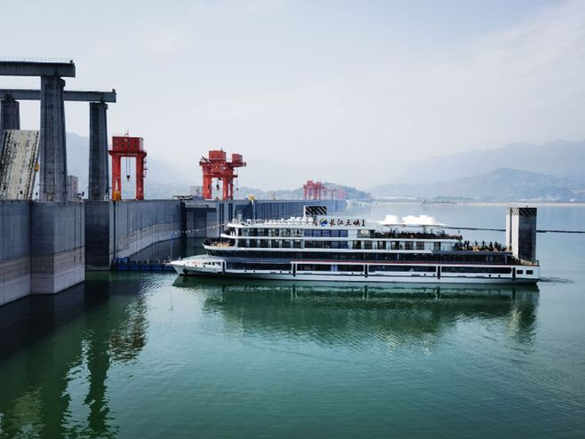 湖北宜昌港汽客運站里,游客排著長隊,準備登上長江三峽1號游輪賞景。這個全球最大的純電動游輪,是由三峽集團所屬長江電力與湖北三峽旅游集團共同投資建造,它利用清潔水電驅動,一次充電可續航100公里,主要在宜昌兩壩一峽、長江夜游、三峽升船機等旅游航線運行。