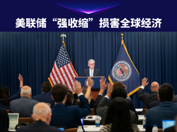 3月16日,美聯儲為緩解高通脹宣布加息25個基點,開啟新一輪加息周期。這一年,美聯儲連續7次累計加息425個基點。這一“強收縮”導致多國貨幣匯率跌至歷史低點,輸入性通脹壓力陡增,債務違約風險上升,金融市場劇烈震蕩。美國收緊流動性,拉升美元匯率,向外轉嫁危機,致使全球金融環境收緊,世界經濟增長放緩,對新興市場和發展中國家,尤其是對欠發達國家經濟造成損害。