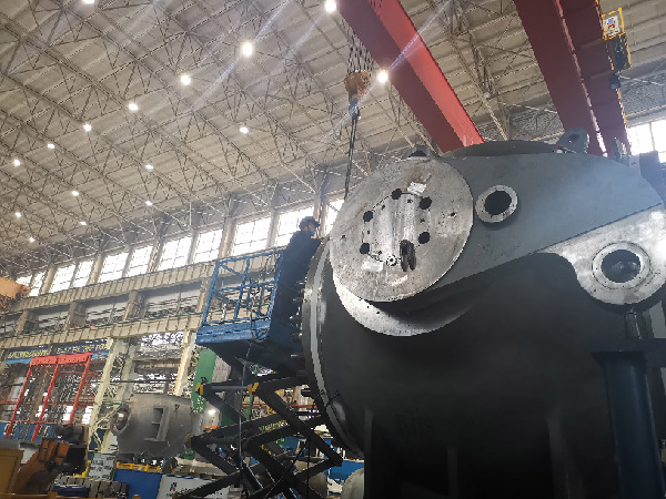 哈電集團哈爾濱電機廠有限責任公司水電分廠,工人在球閥上作業。