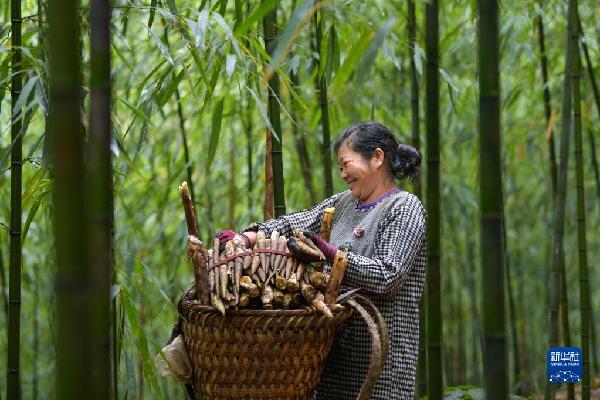 2022年10月27日,在貴州省赤水市寶源鄉聯華村,農民收獲竹筍。新華社記者 楊文斌 攝