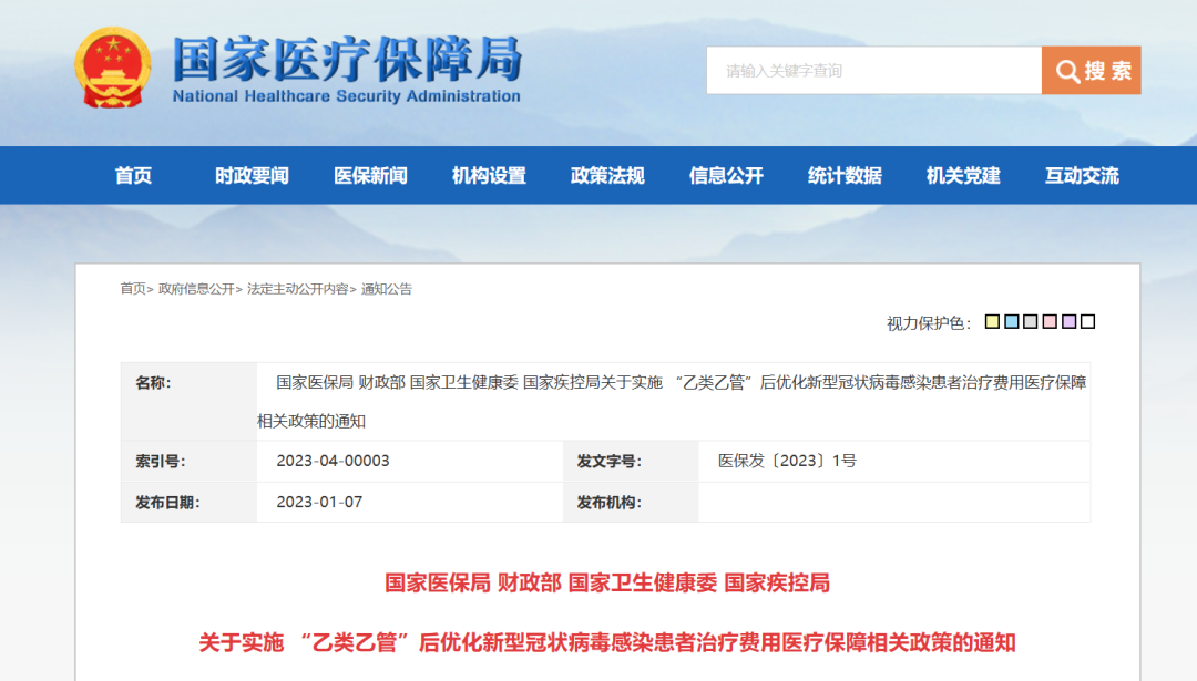1月7日,國家醫保局、財政部、國家衛生健康委、國家疾控局四部門聯合發布《關于實施 “乙類乙管”后優化新型冠狀病毒感染患者治療費用醫療保障相關政策的通知》(以下簡稱《通知》)。