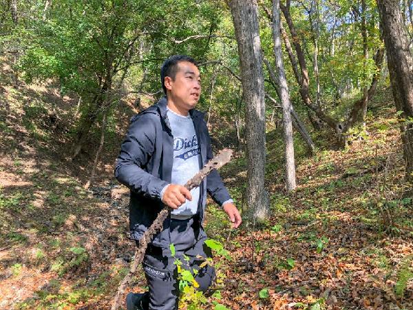 2022年9月19日,梁鋮龍在山里查看養雞圍場情況。(受訪者供圖)