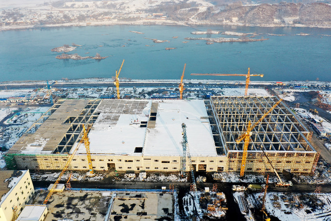 凜冽的寒風,擋不住敢闖的勁頭。40多臺汽車吊、120多臺曲臂車、60多臺焊機、800多名工人……氣溫-20℃,奧迪一汽新能源汽車項目現場,一派火熱的施工景象。作為德國奧迪品牌在華的首個純電動車型生產基地,這個計劃投資額超過300億元的項目僅用時5個月,便完成從破土動工到暖封閉,比原計劃足足提前一個月。