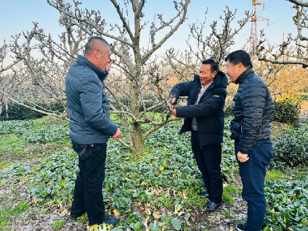 圖為吳雪春(右二)指導村民修剪梨樹。(受訪者供圖)