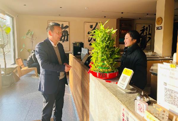 午后,陽光穿透云層,村莊中有了融融暖意,一些人家掛起的紅燈籠格外亮眼。吳雪春走進“覽山·悅境”民宿,老板娘曹莉莉正往屋里搬蝴蝶蘭?!翱爝^年了,你們又要忙起來了,我來看看準備得怎么樣了?!眳茄┐阂贿呎f話,一邊幫曹莉莉搬花盆?!罢郎蕚渲?,剛去花卉市場買的蝴蝶蘭,給店里添點熱鬧氣兒?!辈芾蚶蛘f。
