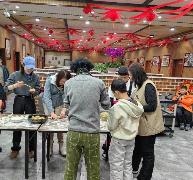 游客在吉林市永吉縣北大湖鎮南溝村過年包餃子。受訪者供圖