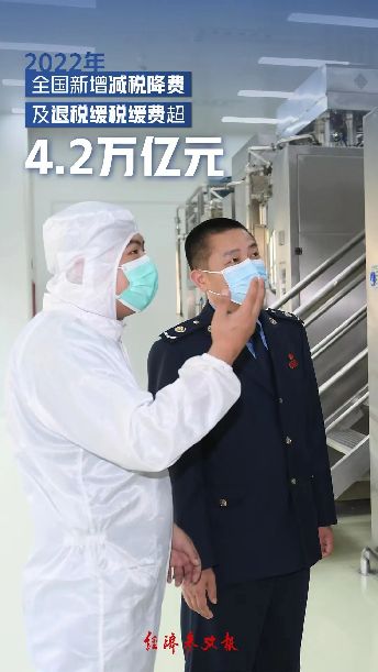 國家稅務總局當天發布的數據顯示,2022年,全國新增減稅降費及退稅緩稅緩費超4.2萬億元。