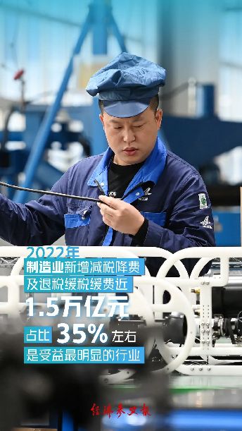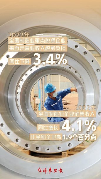 三是助力了制造業平穩運行。在系列稅費支持政策作用下,2022年,全國制造業重點稅源企業每百元營業收入稅費負擔同比下降3.4%,幫助企業輕裝上陣。增值稅發票數據顯示,2022年,全國制造業企業銷售收入同比增長4.1%,比全部企業高1.9個百分點。特別是享受留抵退稅政策的制造業企業購進金額同比增長8.2%,比沒有享受留抵退稅政策的制造業企業高4.5個百分點。