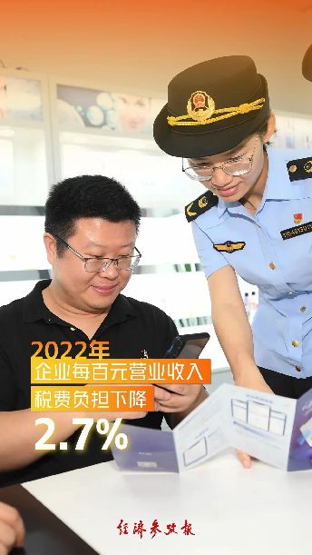 一是以“真金白銀”有效緩解了企業經營壓力。稅務總局對10萬戶重點稅源企業調查顯示,2022年企業每百元營業收入稅費負擔下降2.7%,其中受疫情影響較大的交通運輸業、住宿餐飲業分別下降15.4%和14.2%,負擔顯著減輕。