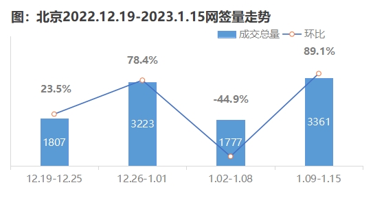 據北京住建委官網數據顯示,1月北京全市二手房網簽8308套,環比上月下降5.3%。除去春節假期網簽暫停的因素,1-15日,北京二手房網簽5152套,環比上月同期上漲51.6%。