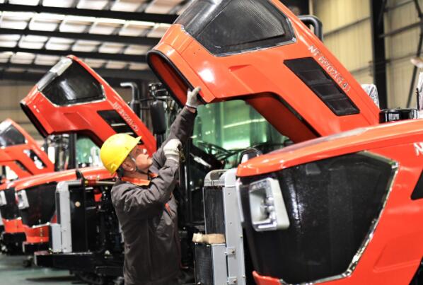 2月13日,在湖南省郴州市高新區一電機公司生產車間,工人在安裝拖拉機引擎蓋密封條。各地企業加緊生產,力爭實現首季“開門紅”。
