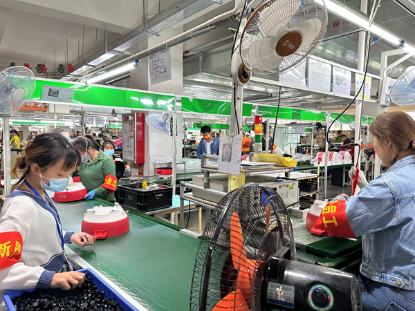 農行廣東順德分行為小熊電器提供全方位金融服務,助力其打造年輕人喜愛的小家電品牌。圖為小熊電器的生產車間內,工人們正忙得熱火朝天。